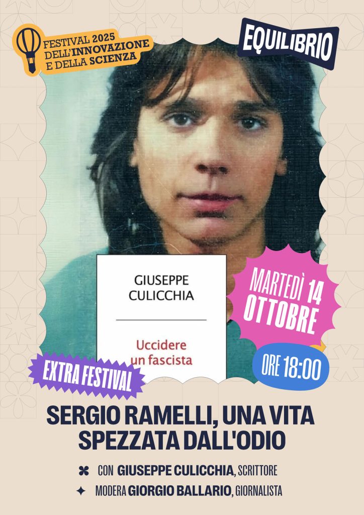 L’evento conclusivo della XIII edizione del Festival dell’Innovazione e della Scienza ci porterà all’Italia degli anni di piombo, segnata da tragici episodi e da un clima di odio e violenza politica. A partire dal suo ultimo libro Uccidere un fascista. Sergio Ramelli, una vita spezzata dall’odio (Mondadori, 2025), lo scrittore Giuseppe Culicchia guiderà il pubblico a riflettere su come memoria del passato, confronto col presente e dialogo sul futuro possano restituire stabilità a una società moderna governata da un fragile equilibrio.